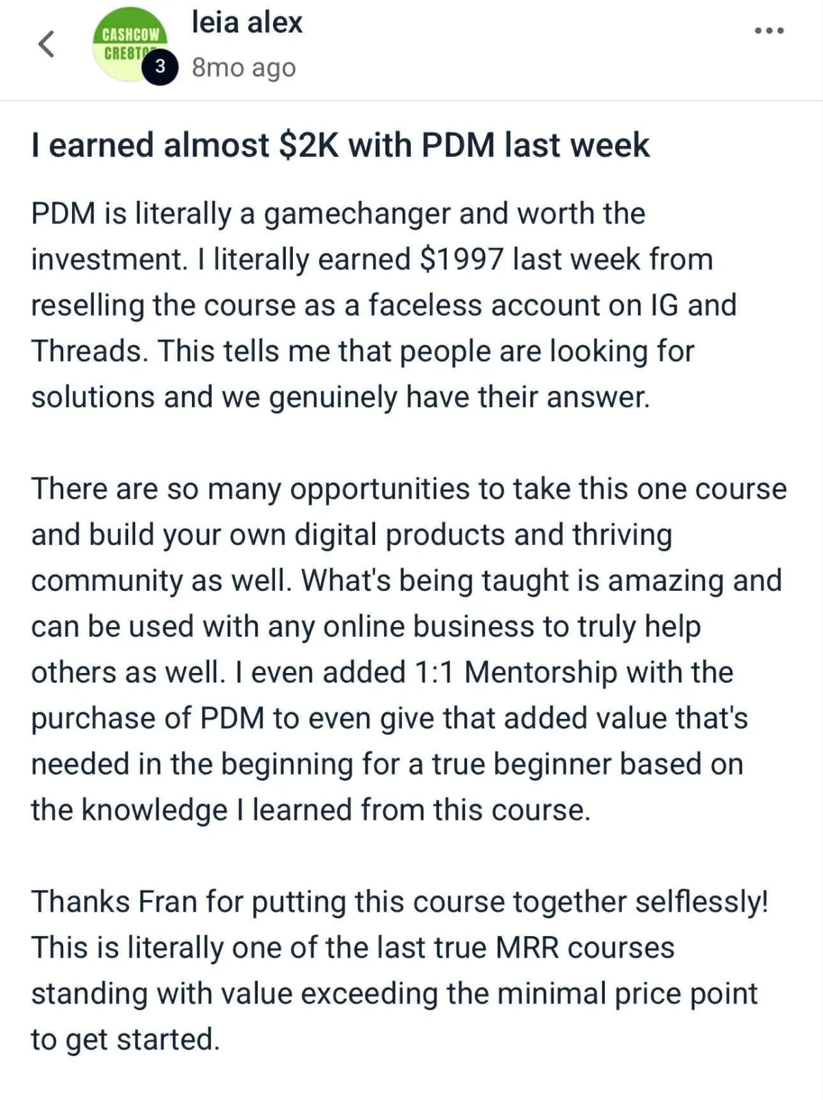 Absolutely not! While you can start earning immediately by reselling PDM, the course teaches multiple ways to make money online. Many students use the strategies and implement it to build their own digital product businesses, become affiliate marketers, or grow their existing businesses.
